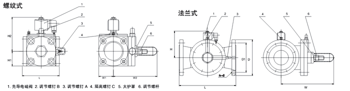 本閥巧妙地將先導(dǎo)電磁閥、手動閥和節(jié)流閥組合于一體,先導(dǎo)閥接受電信號開關(guān)后帶動主閥動作。調(diào)節(jié)螺釘A、B可調(diào)節(jié)介質(zhì)粘度適用范圍和主閥開關(guān)時間,并可在主閥磨損后進行補償。導(dǎo)閥需維修時只要旋緊調(diào)節(jié)螺釘B和隔離螺釘C,即可拆下,并可用手動螺桿操作。該螺桿 還可用來預(yù)置電磁閥自動控制時的最大或最小流量。